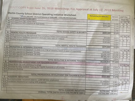 When the TAM investigated how the money was actually allocated, we found ourselves with a lot more questions that need answered. One is how your school Board arrived at their allocation levels of spending after YOU and I gave them 11.2 million dollars of the Martin County Property Owners money. Which was purposefully peddled as a TEMPORARY “Raise for the Teachers” for our Children’s Future.
